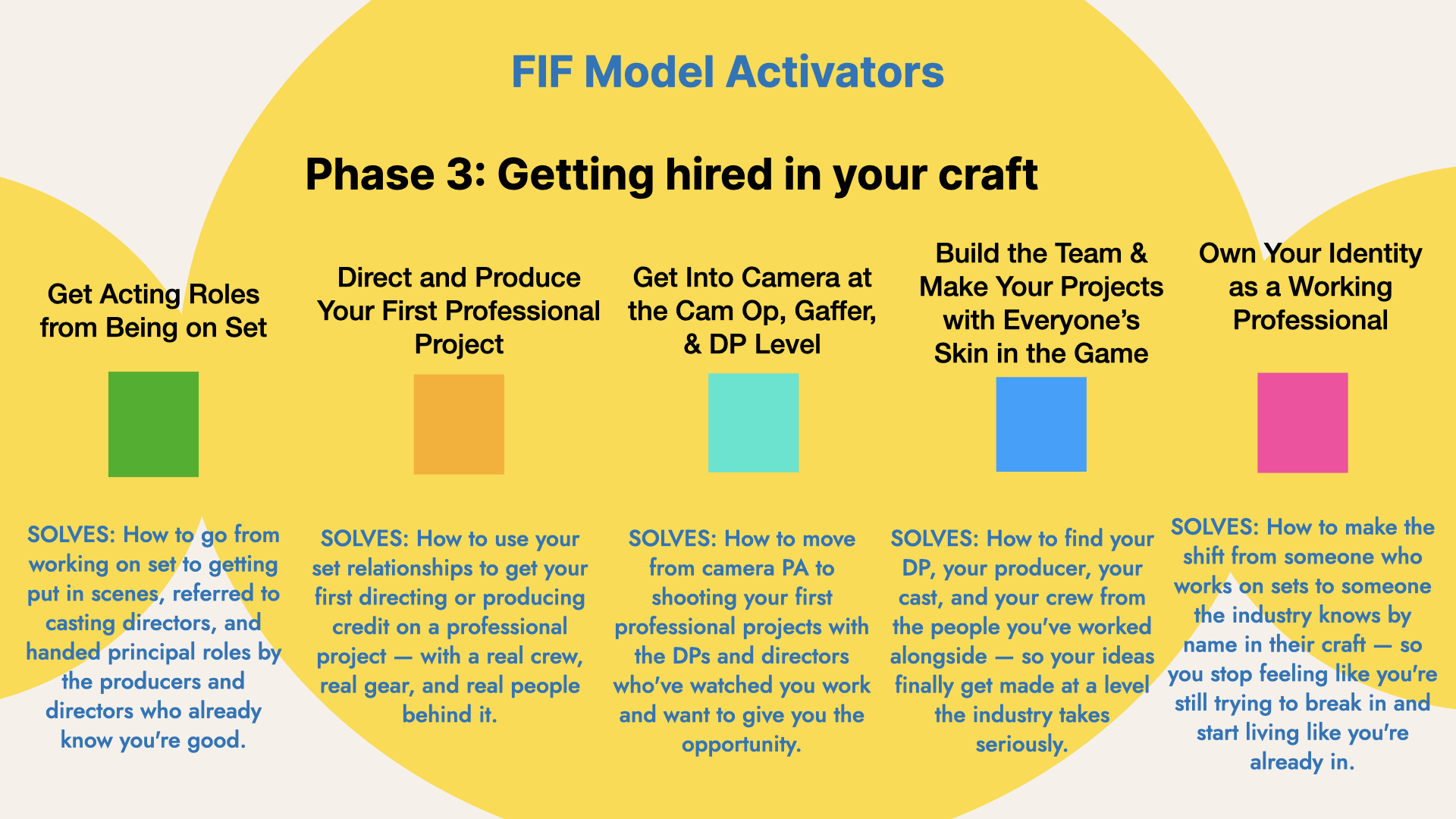 3. Simple mental tools to keep taking action even when your brain is screaming at you to stay safe. This is when we learn new things. Everyone on set started somewhere. Everyone on set was new at first! - Magic List of Plentiful Work — The system that keeps the right people in your corner, thinking of you, and calling you for shoots — so work finds you instead of you chasing it.