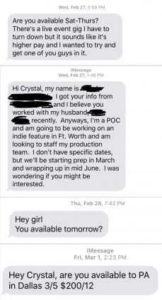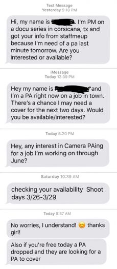 Other jobs got me referrals to more jobs. I knew jobs were starting to stack and soon I’d have to quit my day job to keep going (I was already starting to turn down film work in March because of my day job!).